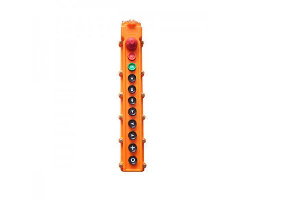Fjernbetjeningen til industriel radio fungerer nøjagtigt som anhængeren, men arbejder med en radiofrekvens i stedet for styringskabler, der er fastgjort til kranen. Radiostyringen består af to hovedkomponenter: radiosenderen (håndholdte enheder) og radiomodtageren (kontrolboks monteret på kran eller hejse) radioen indbygger adskillige safty funktioner og giver operatøren en større mobilitet end en vedhængsstation
