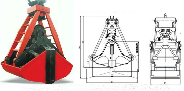 I alle former for kran, med to grupper af motortromle (den elektriske hejse), fører hver gruppe af motortromler et tovværk, et tovværk i balancestativ til understøtning, og det andet reb passerer opbjælkelens remskive og den nedre bjælke pully, komposit en remskiveblok som åbning og lukning af gribeskovlen.