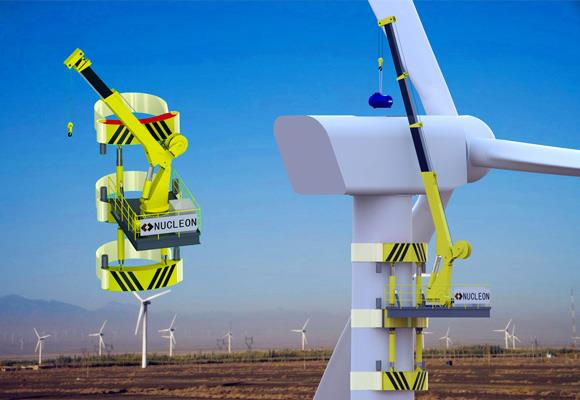 Selvklatringskran til vedligeholdelse af vindmølle