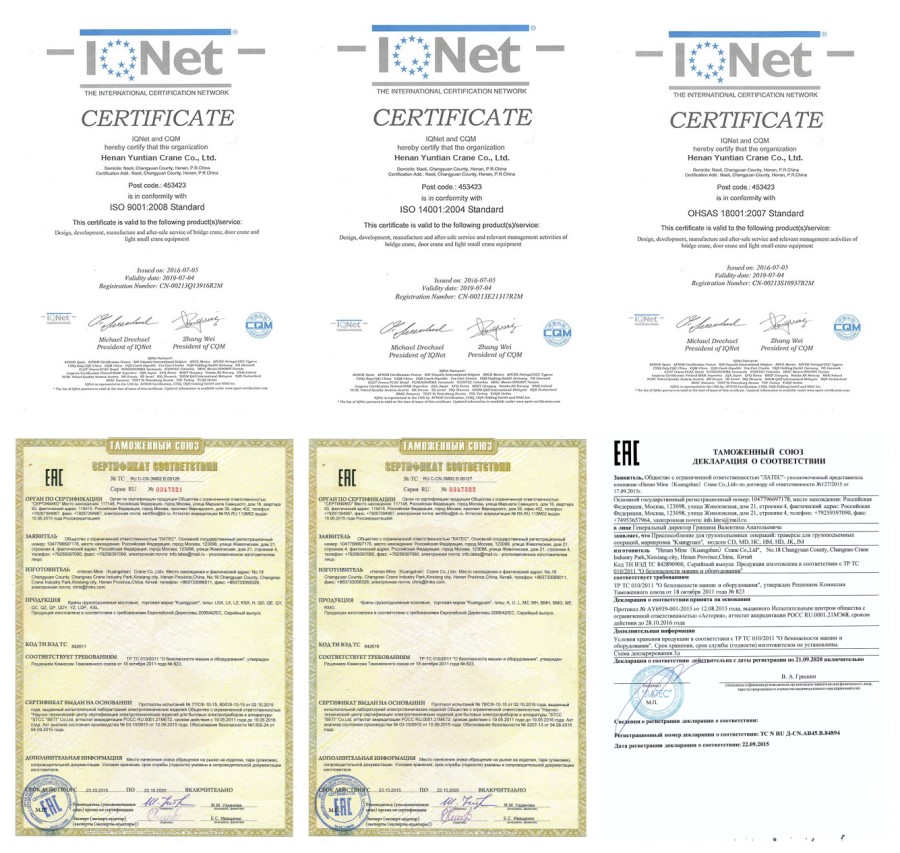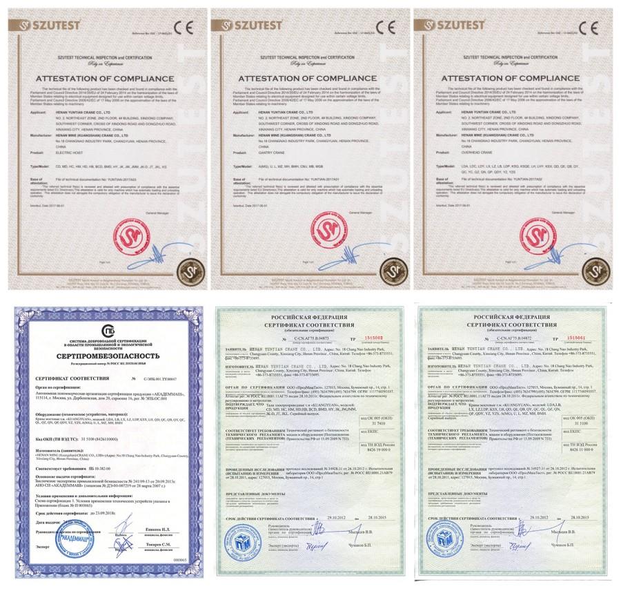 Vores kran har bestået CE, ISO, GOST, SGS, TUV, BV, og så videre.